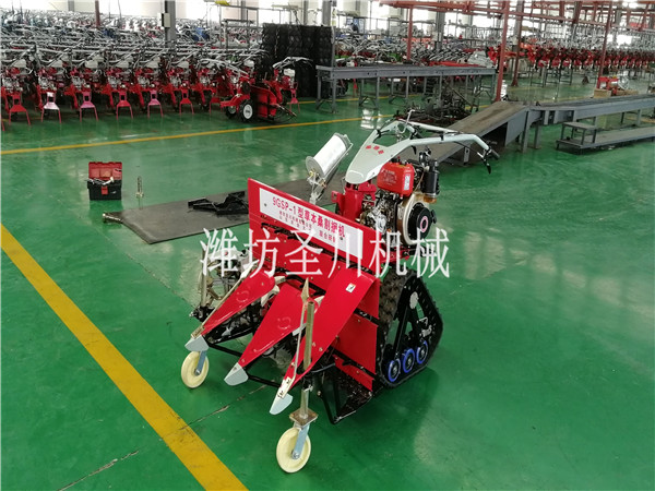 該產(chǎn)品由山東農(nóng)業(yè)大學(xué)和濰坊圣川機(jī)械有限公司在原有稻麥割捆機(jī)的基礎(chǔ)上開(kāi)發(fā)的專門(mén)應(yīng)用于草本桑收獲的機(jī)械(擁有多項(xiàng)發(fā)明設(shè)計(jì)專利,仿冒必究)。草本桑是指草本化栽培、無(wú)干、一年可收割多次的桑樹(shù)。本系列草本桑收割機(jī)是一種手扶式草本桑收割機(jī)械,是目前國(guó)內(nèi)唯一的一款專門(mén)開(kāi)發(fā)用來(lái)收割草本桑的機(jī)械。具有機(jī)體積小、重量輕,機(jī)動(dòng)性能靈活、操作簡(jiǎn)單省力、割茬高度可調(diào)、履帶內(nèi)距可調(diào)等優(yōu)點(diǎn),該機(jī)可廣泛用于平原、丘陵、坡地、窄小地塊作等不同地形桑園內(nèi)草本桑的一年多次收割,收割后的草本桑既可用于養(yǎng)蠶,也可粉碎后用于畜禽飼料。